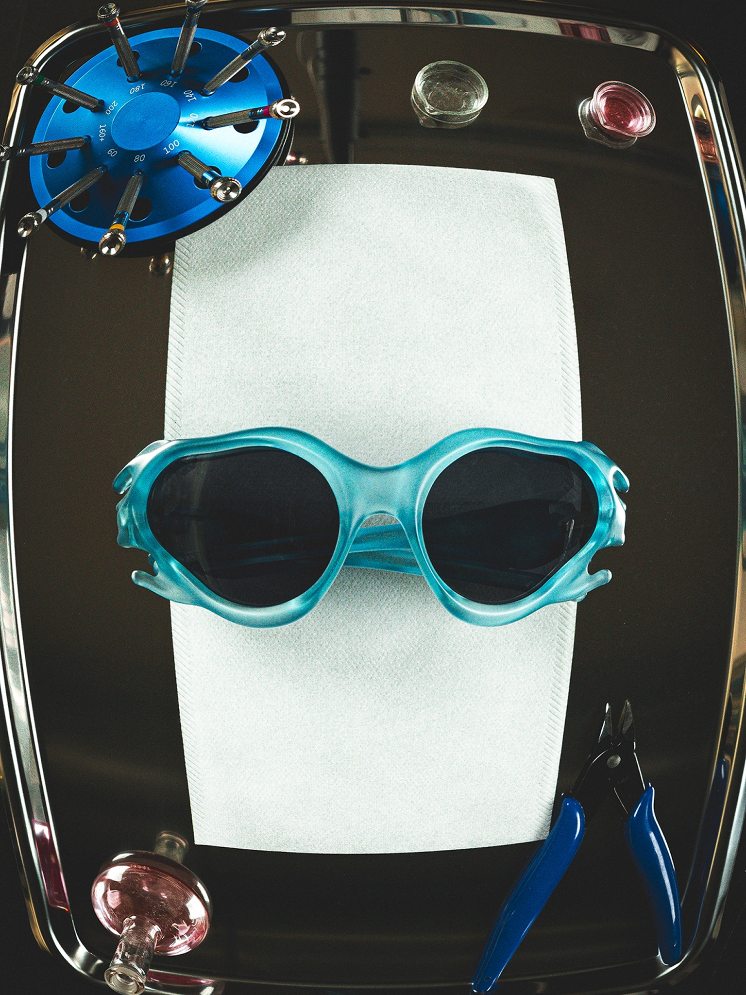 Here, fantasy eyewear takes form. Frames begin as digital models and are made physical using next-generation 3D printing machinery before being sculpted, smoothed and completed by hand. The approach preserves the tactile qualities of traditional craft while expanding the capacity to produce consistent and high-quality pieces at scale, allowing us to create expressive eyewear in both small experimental runs and refined larger batches.