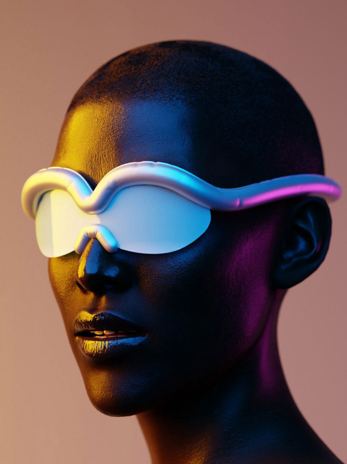 Caption: Digital artistry meets runway-worthy design in new eyewear line.