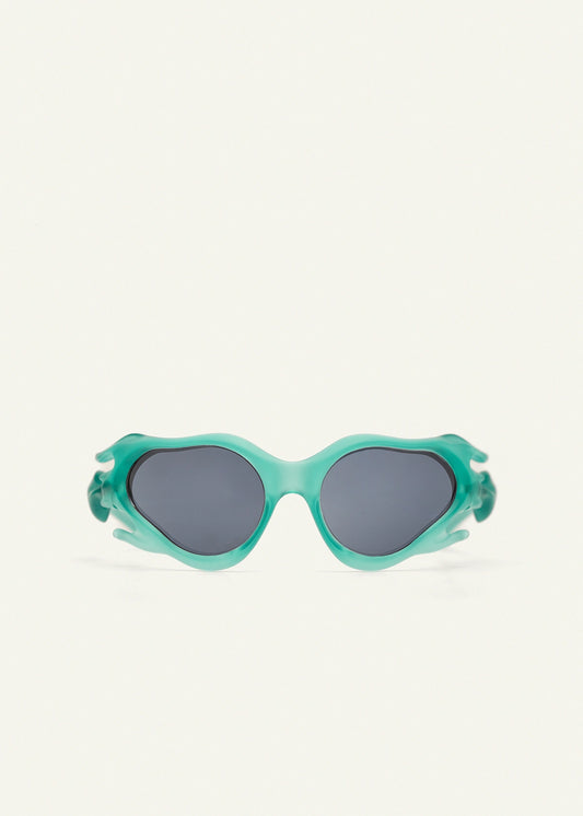 Exaggerated, inflated volumes with signature embellishment, including gold-plated wirecore, a 5-joint hinge system, and gold-tone engraving. A sculptural marvel for your face.